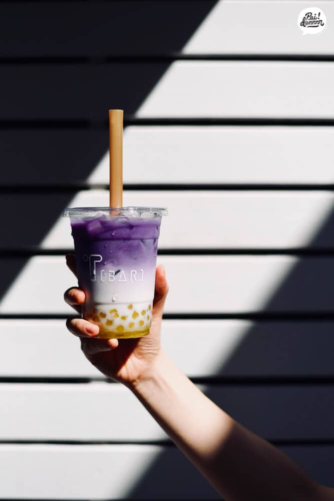 สั่งมาลอง 3 แก้วด้วยความอยากรู้ Black nitro coffee (85 THB) Matcha latte (95 THB) และ Japanese Purple Yam latte (85THB)