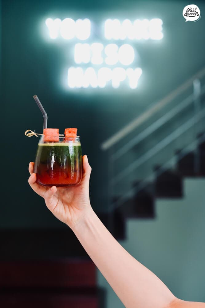 บรรยากาศร้านค่อนข้างดี อีกอย่างเกือบลืม สั่ง Mango beer (140THB) มาจิบเพลินๆ หรือ matcha melon (150THB) สีสันเข้ากับเทศกาลคริสต์มาสมากๆ