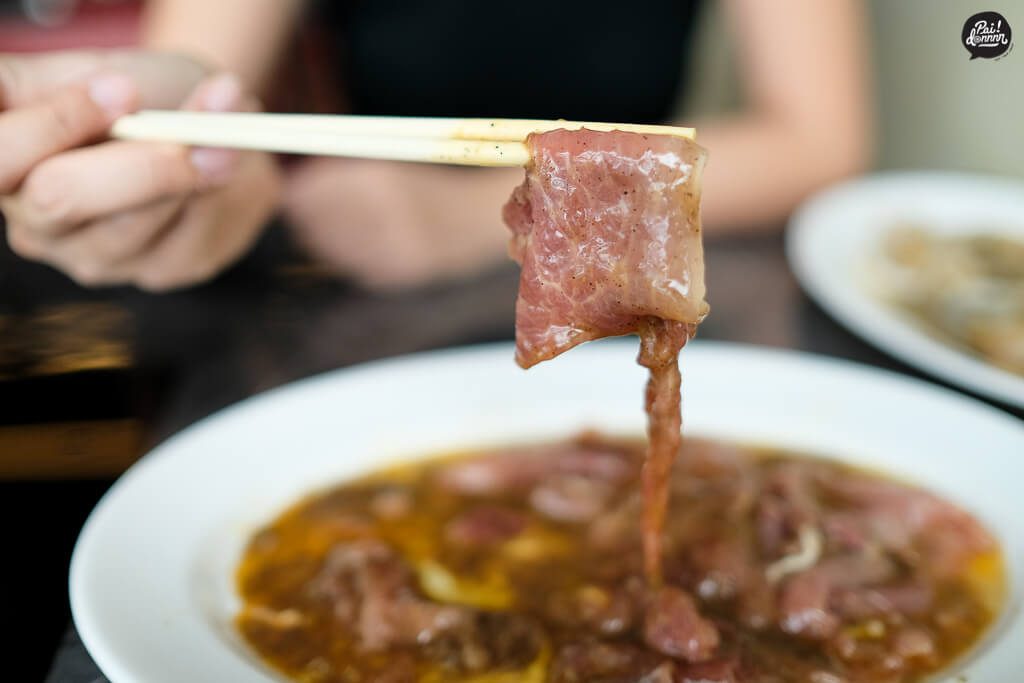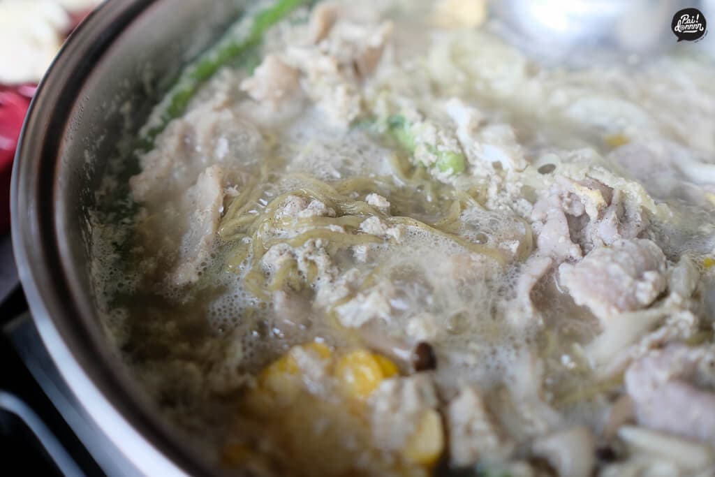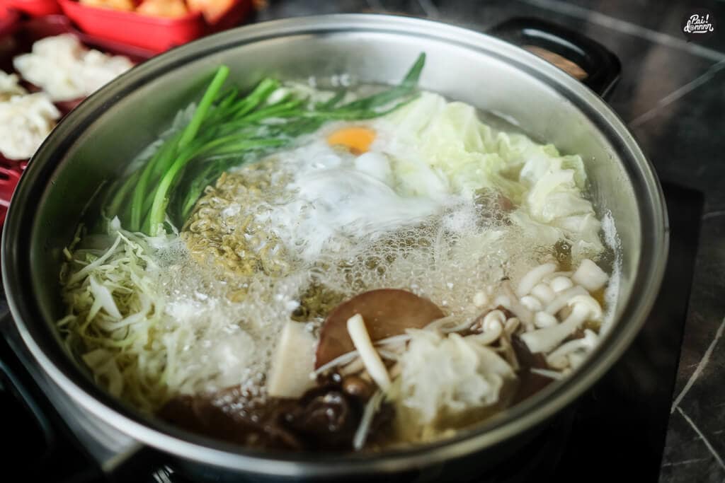 เมื่อน้ำเดือดใส่ผัก และ เมนูหมักทั้งหมดลงไป คนให้เข้ากัน รอให้สุกแล้วจึงกิน เพราะน้ำหมักในเนื้อสัตว์จะทำให้น้ำซุปหวานกลมกล่อมอร่อย