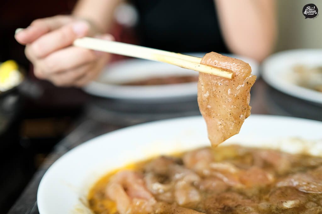 สุกี้โบราณจะต่างกับสุกี้อื่นๆที่เรามักจะค่อยๆใส่เนื้อลงไป ลวกๆแล้วกินเลย ก่อนอื่นเราต้องนำเมนูหมัก มาคลุกเคล้ากันให้เรียบร้อย