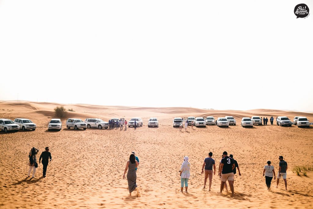 นัดกับทัวร์ไว้ประมาณบ่าย 3 ที่โรงแรม ทัวร์ที่จองไว้จะเป็นรถ 4WD นั่งคันละ 6 คน (ไม่รวมคนขับ) พวกเราก็ปาไปแล้ว 5 คน มีคนญี่ปุ่นมาเพิ่มอีกหนึ่งคนเป็นอันครบ และแล้วก็ได้เวลาออกเดินทาง โดยเค้าจะไปกันเป็นทีม ไม่ได้มีแค่คันเรานะ เป็นคาราวานเลยก็ได้แหละ โดยทุกคนจะไปนัดเจอกันที่ปั๊มน้ำมันชานเมือง เป็นที่สุดท้ายที่มีห้องน้ำ กันไว้ดีกว่าแก้ จงเข้าไปนะคะทุกคน เมื่อทุกคันมาครบ ก็ไปที่ทะเลทรายกัน ระหว่างทางที่ขับรถออกไปจากเป็นเมืองที่ค่อนข้างศิวิไลซ์ ก็เริ่มเป็นตึกธรรมดา บ้าน และ ทะเลทราย