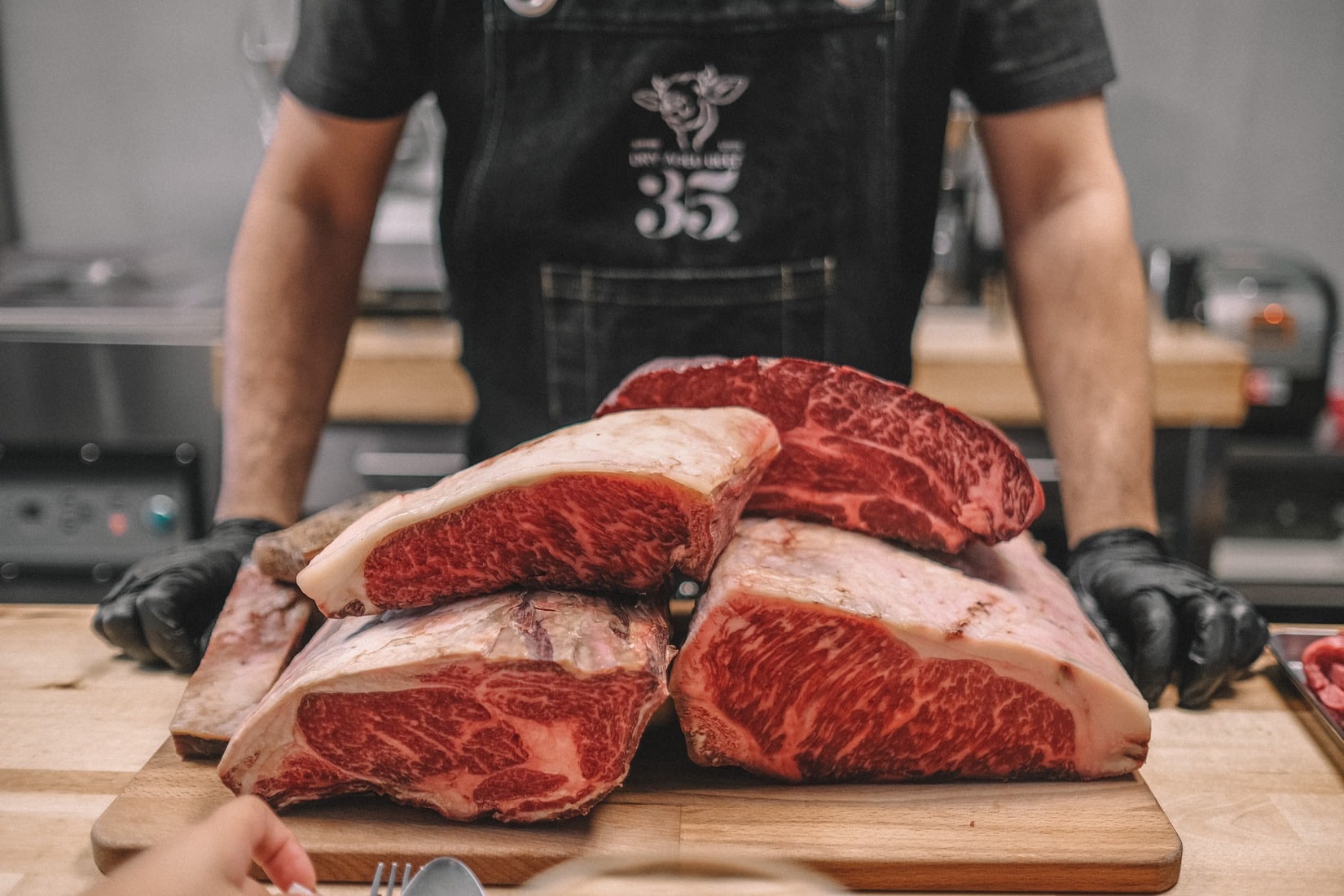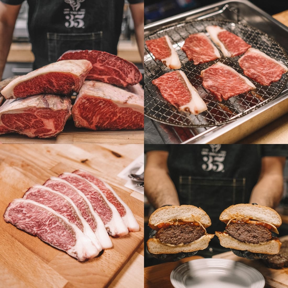 ใครจะไปคิดว่าร้านขายผ้าย่านเจริญรัถ จะมีร้านเนื้อดรายเอจเล็กๆที่นั่งได้เพียงแค่ 6 คนเท่านั้นซ่อนอยู่ แม้จะเล็กแต่คุณภาพคับร้านแน่นอน เพราะคิวจองยังเต็มไปอีก 1-2 เดือนล่วงหน้ากันเลยทีเดียว  35 เลขนี้คือจำนวนวันที่ใช้ในการ dry aged เนื้อของทางร้าน โดยที่เชฟแทนบอกว่าเป็นจำนวนวันที่ดีที่สุด ทางร้านใช้วัววากิวจากภาคอีสานทั้งหมด เรียกได้ว่าเนื้อไทยไม่แพ้ชาติใดในโลก ลายเนื้อสวยมาก ทุกวันนี้บอกเลยว่าแทบไม่พอกินกันแล้วจ้า ขายดีสุดๆ