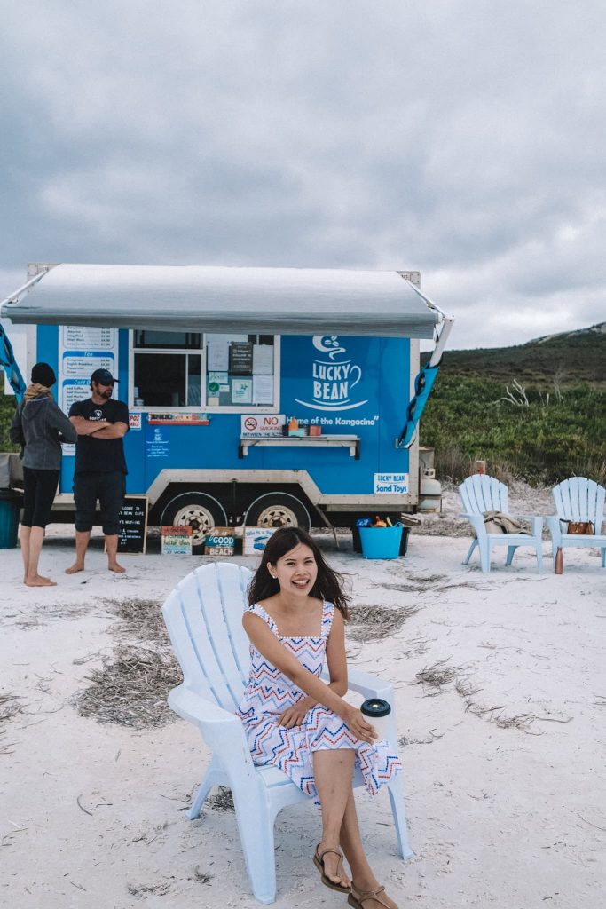 ถ้าหากมาเร็วจะมีร้านกาแฟ Lucky bean เป็น truck คันเล็กๆมาเปิดให้จิบกาแฟดูจิงโจ้ริมชายหาดด้วย ชิลมากๆ ร้านเปิด 9.30-16.00 น.