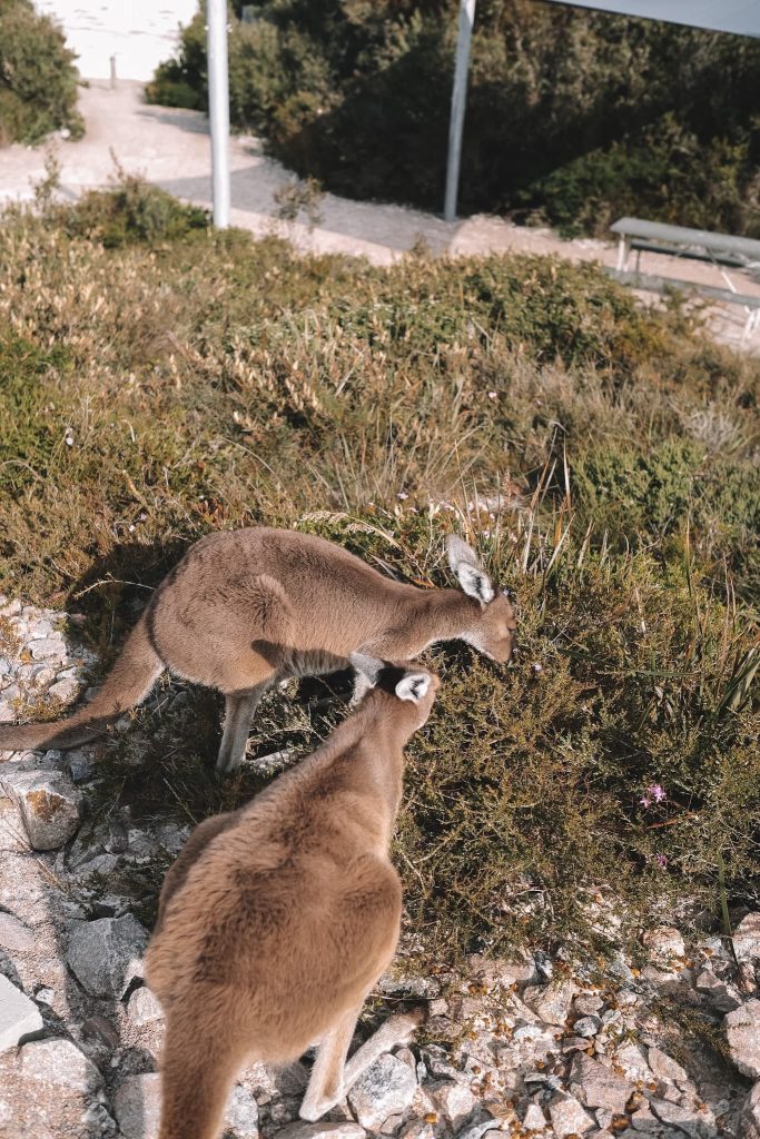 จุดหมายแรกของเราวันนี้คือ Lucky bay เราคาดว่าจะมีคนมาเยอะพอสมควรเพราะเป็น weekend ไปถึงมีคนอยู่จำนวนหนึ่งเลยแต่ไม่ได้เยอะมาก และเราก็เจอน้องจิงโจ้ตัวแรกมาทักทาย เราไม่รอช้าแอบย่องตามไปถ่ายเลย จิงโจ้ที่นี่ไม่กลัวคน แต่ก็ไม่ได้สนใจเรามากขนาดนั้น อารมณ์ว่าอยากถ่ายชั้นก็ถ่ายไป แต่ชั้นจะหาของกินจ้า อย่ารบกวนน้องเกินไปก็พอ ถ่ายรูปแต่พองาม