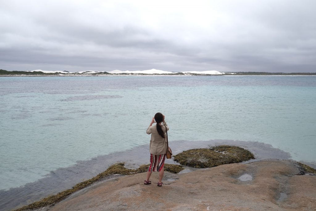 วันนี้เรามีเวลาพอสมควรเลย เพราะบินกลับตอนเย็น เลยพยายามหาที่เที่ยวที่เหลือ จริงๆยังมี Cape Arid National park ที่อยากไป แต่ขับไปอีกค่อนข้างไกล เราไม่อยากเที่ยวแบบรีบๆเลยคิดว่าไว้มีโอกาสค่อยมาใหม่ดีกว่า เลยคิดว่าไป Wylie bay เป็นหาดลับๆแบบลับจริงๆ น้ำใสแจ๋วเลย มีคนมาเล่น paddleboard ด้วย แต่วันนี้อากาศเย็นมากเลยอยู่ได้ไม่นาน จากตรงนี้ถ้ามี 4WD สามารถขับเลียบชายหาดไปถึง Le grand beach ใน Cape le grand national park ได้เลย