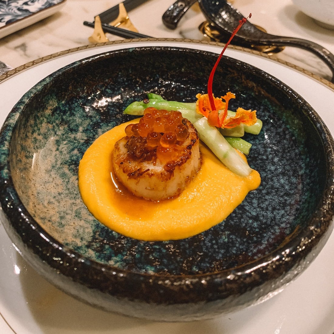 บอกเลยว่าจานนี้คือ พระเอกของวันนี้ อร่อยจนต้องขอเลียจาน หอยเชลล์ตัวโต๊โต ผัดกับซอส XO สูตรของทางบ้าน ที่ไม่เหมือนที่อื่น ด้านล่างรองด้วย carrot puree ที่ดีมาก เนื้อเนียนนุ่ม นมที่ทางร้านใช้สั่งจากฟาร์มวัวออร์แกนิคพิเศษ ที่มีวัวเพียง 15 ตัวเท่านั้น เอาซิ พรีเมี่ยมมั้ยล่าา