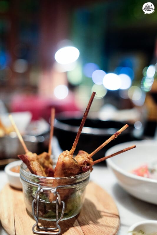 Brochettes de poulet Satay (140THB) อีกเมนูที่ไม่ควรพลาด เพราะเป็นสูตรเฉพาะของคุณแม่เจ้าของร้าน ไก่สะเต๊ะ!! อร่อยมากกกก กินกันเกลี้ยงเลยจานนี้