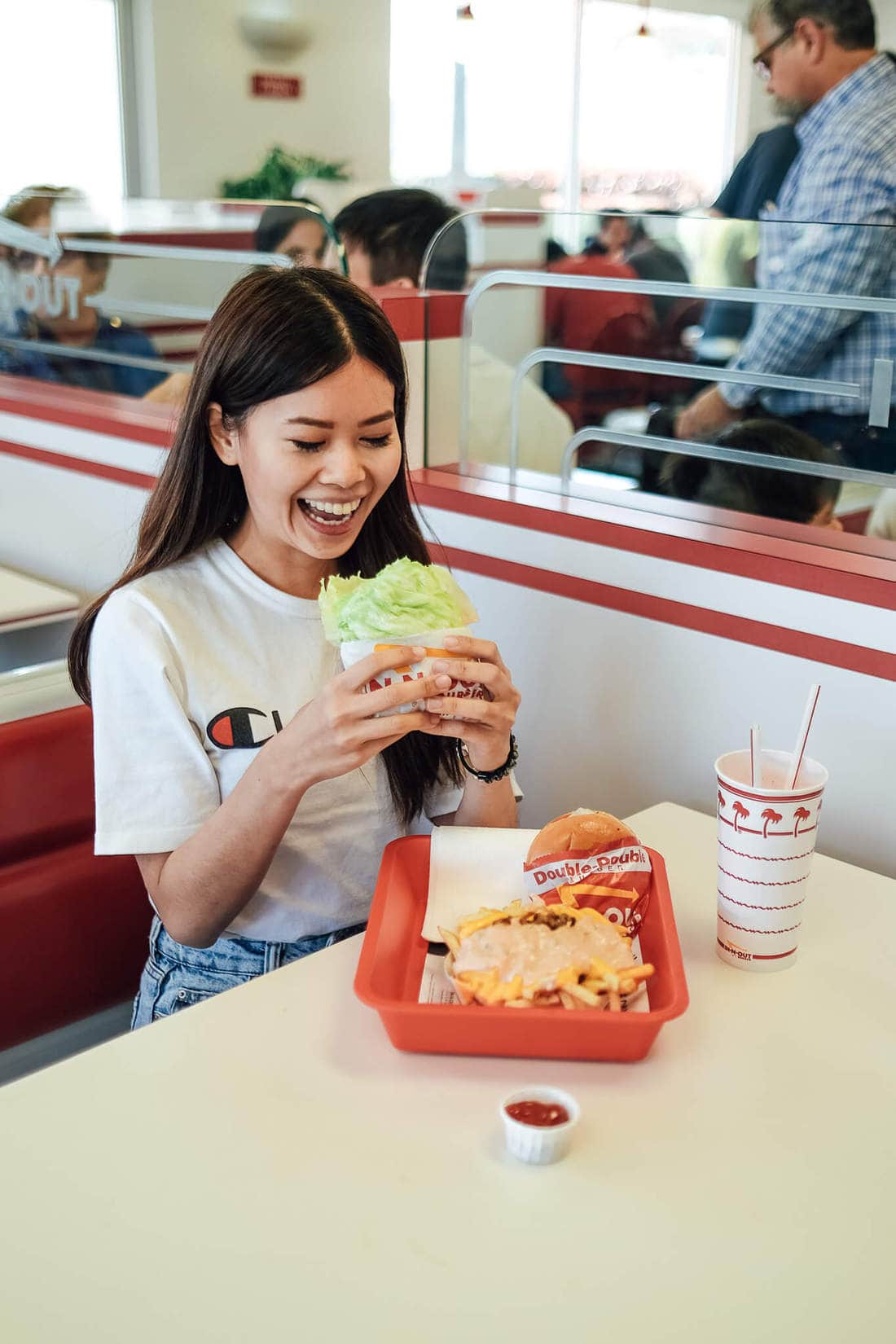 มา California แล้วไม่กินเบอร์เกอร์ In-N-Out นี่เหมือนมาไม่ถึง เหมือนไปฝั่ง New York แล้วไม่ได้กิน Shake Shack ยังไงยังงั้นเลย ร้านเบอร์เกอร์ที่มีมาตั้งแต่ปี 1945 และยังขายดิบขายดี ต้องรอคิวจนถึงทุกวันนี้ เรียกได้ว่าไม่ธรรมดาแน่นอน ที่นี่มีแต่เนื้ออย่างเดียว เราชอบ cheese burger มาก เนื้อสุกแบบ medium โปะด้วยชีสที่ละลายแนบไปกับตัวเนื้อเลย มันฟินมากกกกกกก ขนมปังก็ดีมาก กรอบนอกนุ่มในหอมอีกด้วย เป็นส่วนผสมที่เข้ากันได้ลงตัวมากๆ และถ้าใครกลัวอ้วน ให้สั่งแบบ protein style จะเป็น cabbage ห่อแทนขนมปัง สุดท้าย Secret menu หรือเมนูลับของร้านที่ไม่มีบอกไว้ เป็นเฟรนฟรายส์ทอดร้อนๆโปะด้วยชีสเยิ้มๆ หอมใหญ่สับย่าง และ thousand island dressing จ้า กินแล้วลืมอ้วนเลยเพราะอ้วนแล้ว
