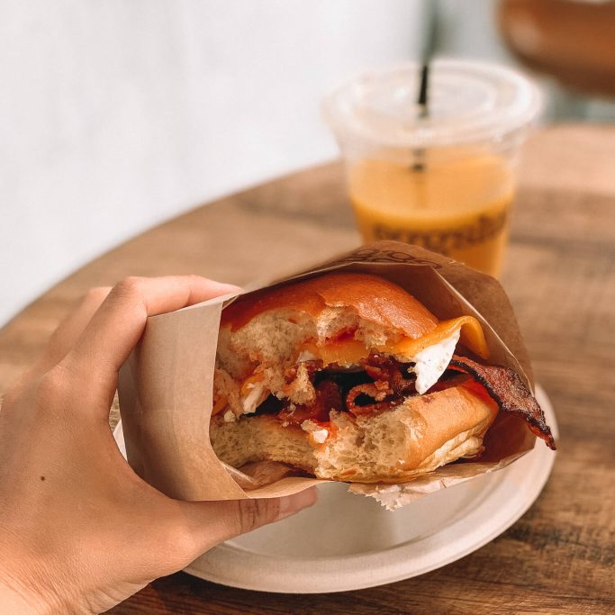 คนชอบกินไข่ไม่ควรพลาด ร้านนี้ปักหมุดตั้งแต่ก่อนมาเลยว่าต้องกินให้ได้ ไปรอบแรกที่ Grand Central Market คนเยอะก็ยอมแพ้ไป ไปได้กินที่สาขา Beverly center คนน้อยกว่าเยอะ เรากินเมนูsignature ของทางร้าน Bacon, Egg & Cheese sandwich ($7) เบคอนจะเป็นแบบรมควัน ซึ่งเราเฉยๆนะ คิดว่าเค็มไป แต่เค้าใส่มาให้เยอะมาก ส่วนไข่ ชีส ขนมปังดีมากก ไข่ทอดมาสุกแบบพอดี๊พอดีอร่อยมาก ตอนกินไม่ได้ระวัง ไข่แดงเลอะหมดเลยจ้า ไข่แดงหวานมากๆ คือสดมากจริงๆ เห็นคนสั่งน้ำส้มเยอะเลยสั่งมาลองด้วย แต่คิดว่าเฉยๆนะ เปรี้ยวฝาดๆเกินไป อีกเมนูที่ถ้าได้มาอีกจะลองคือ Slut เป็นไข่ลวกผสมกับ potato puree กินคู่กับ baguette
