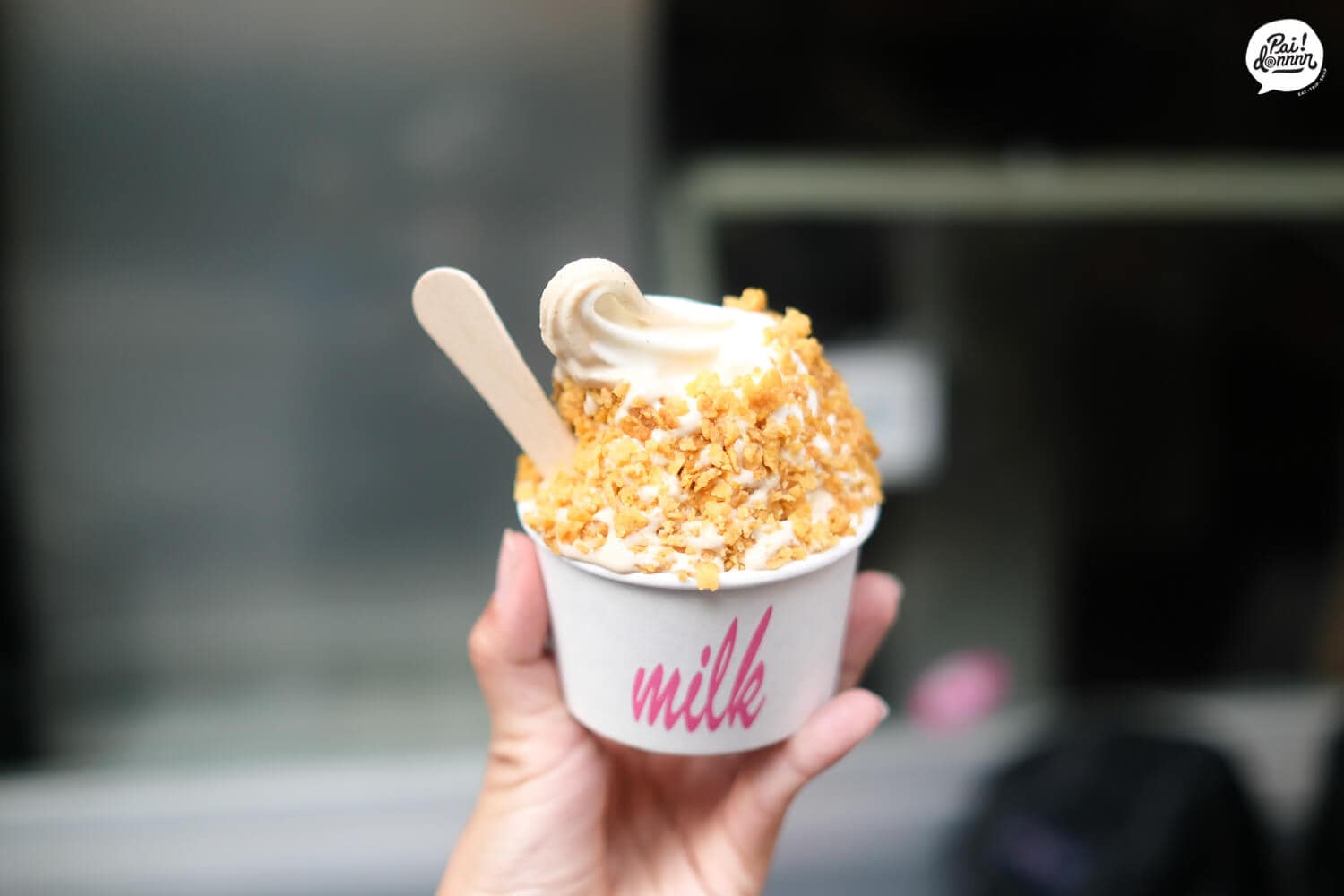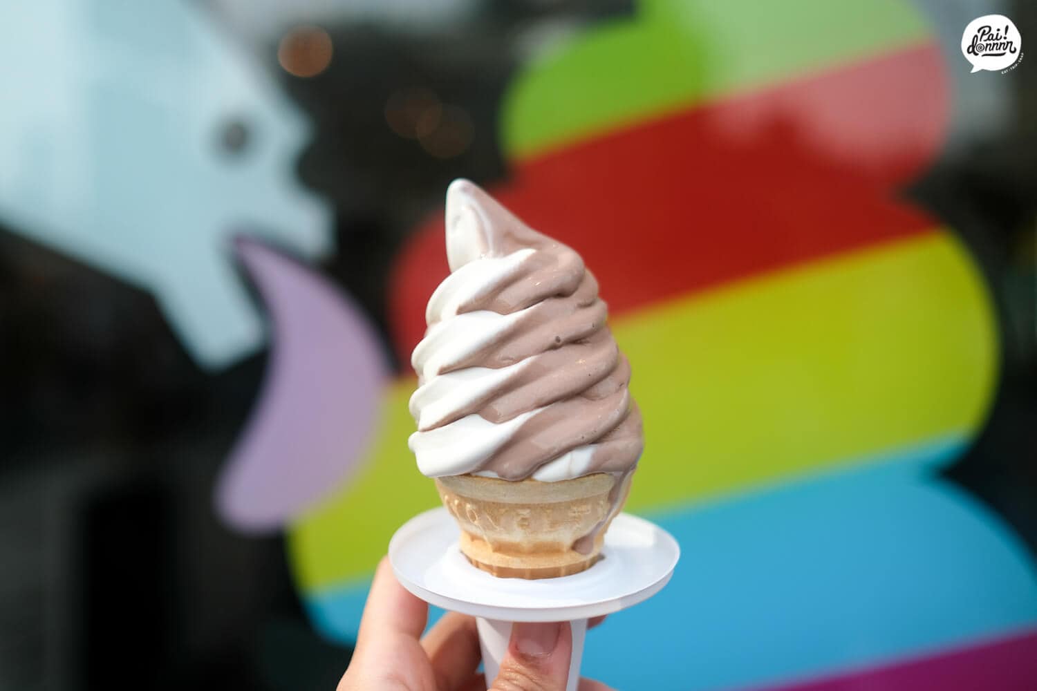 ที่นี่ดัง soft serve เราเลือกแบบ two tone มาลอง สามารถ dip chocolate หรืออย่างอื่นเพิ่มเติมได้ด้วย