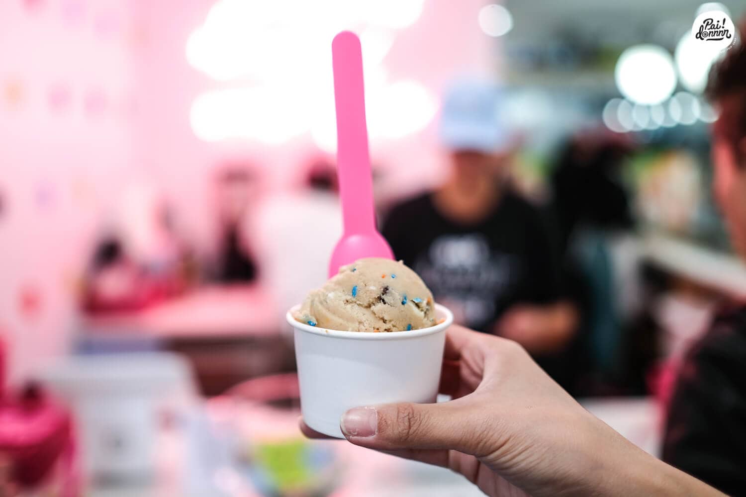 เห็นหน้าตาแบบนี้ตอนแรกนึกว่าไอศกรีม แต่ไม่ใช่จ้าาา มันคือ cookie dough ต่างหาก แบบยังไม่อบ แต่เค้ามีกรรมวิธีดัดแปลงให้กินแบบนี้ได้เลย (ใครจะลองเอากลับไปอบที่บ้านก็ได้นะไม่ว่ากัน) คนที่นี่ดูชอบเอามากๆ มาช่วงฮอตๆนี่ต้องเข้าคิวกันเลย ส่วนตัวเราคิดว่าไม่ใช่แนวเท่าไร หวานแบบเลี่ยนปวดหัวมาก สั่ง scoop เดียวยังกินไม่ไหวเลย แอบเห็นบางคนกินที 2-3 scoops เลย แอบตกใจทำไปได้ไง 5555