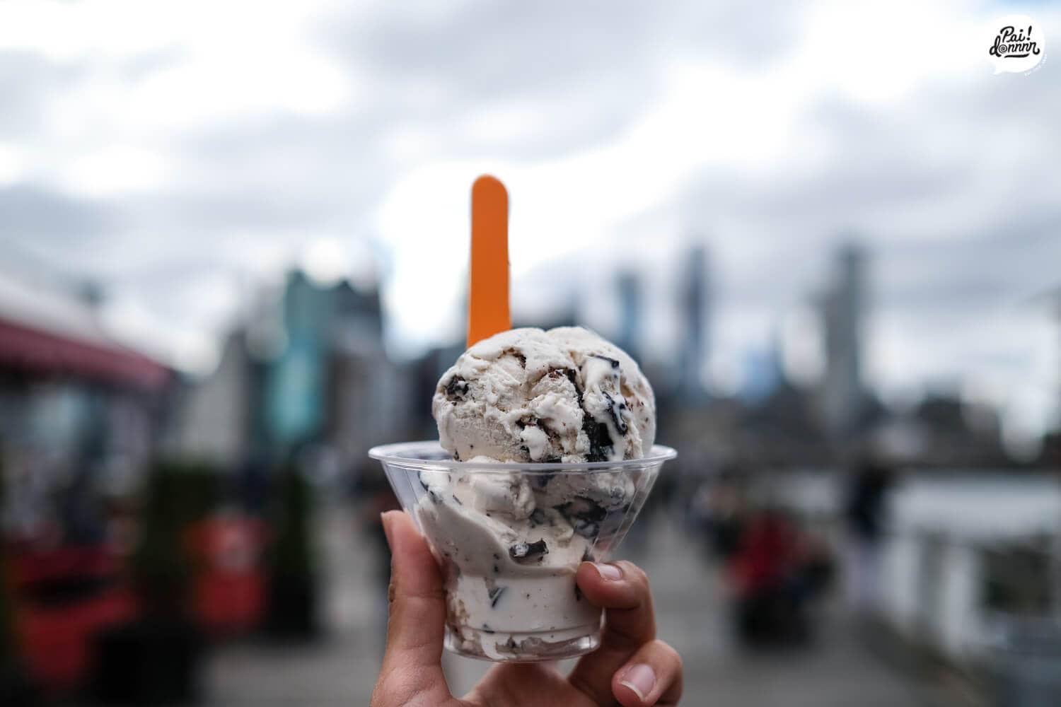 ข้ามมาฝั่ง Brooklyn แล้ว นอกจากพิซซ่าเตาถ่าน (เราไม่ได้กินนะ อิ่มมากๆ) ก็มีไอศกรีมเจ้านี้แหละ ที่คนต่อคิวกันยาวออกมานอกร้านเลย เราลองชิมรส vanilla chocolate chunk ตัวไอศกรีมวานิลลาหอมดี choc chunk แอบแข็งไปนิดนึง ตอนมากินไอติมนี่ลมแรงมาก แต่สู้ค่ะ ! 5555
