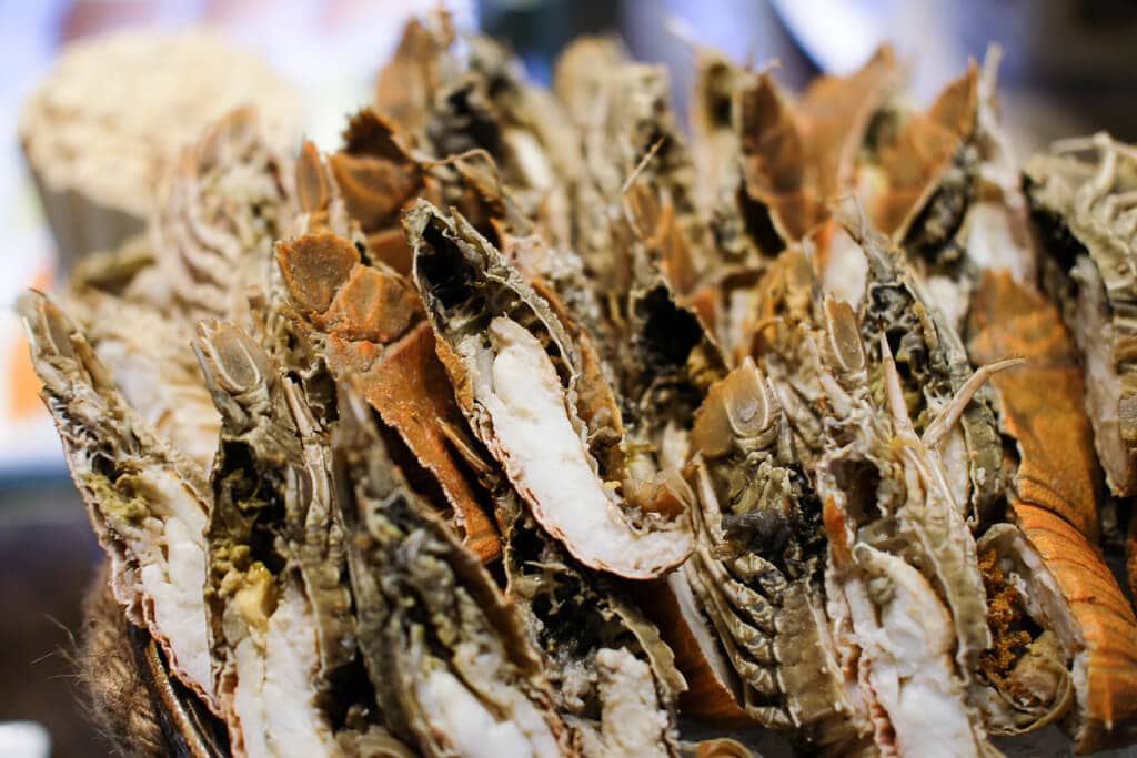 ทุกคนที่มาจะได้รับ Canadian lobster กันคนละครึ่งตัว ทำกันสดๆ เนื้อเด้งกรอบอร่อย มีน้ำจิ้มซีฟู๊ดเสิร์ฟคู่กัน