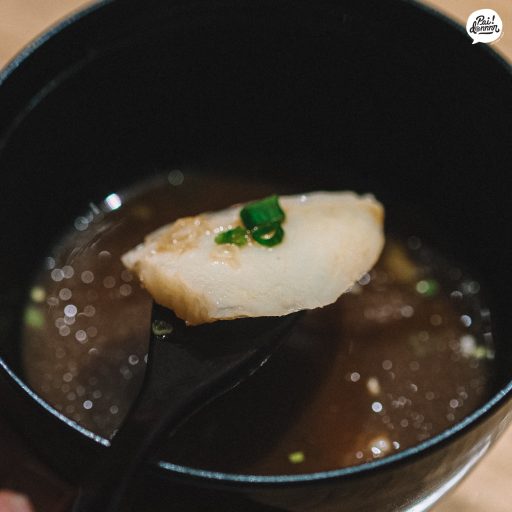 คำนี้แยกมาเป็น 2 ส่วน คือซุป เนื้อปลา Kokko เป็นซุปใส และมีไข่ปลา kokko โปะวาซาบิมาด้วย โดยจะลองชิมเปล่าๆก่อนหรือใส่ลงในซุปก็ได้นะ
