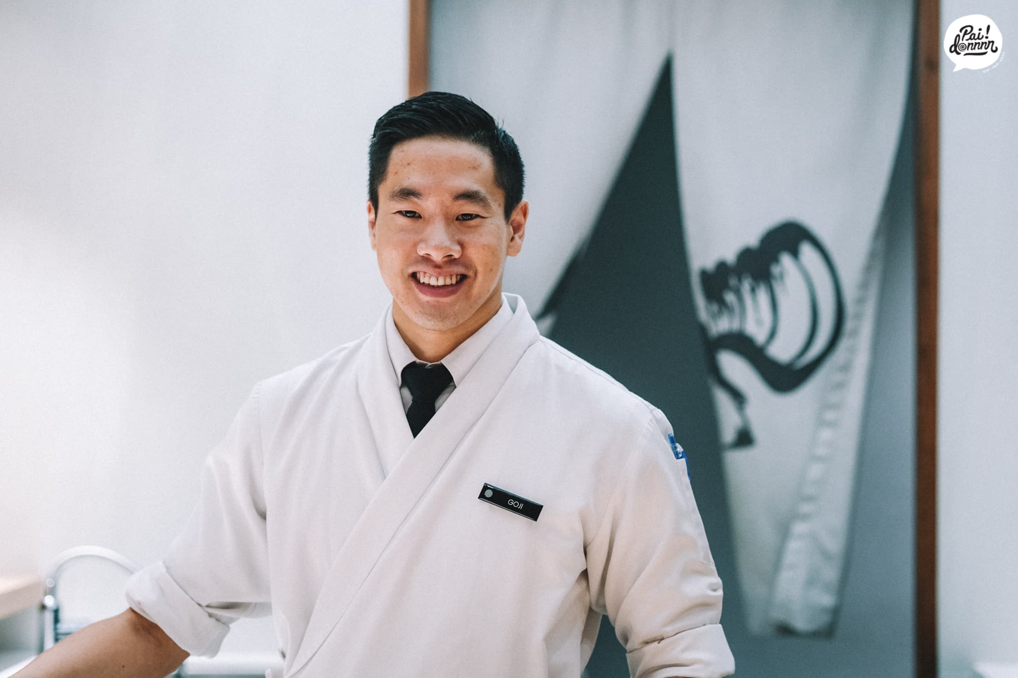 เชฟรูปหล่อที่มาปั้นให้เราในวันนี้คือเชฟโกจิ โคบายาชิ ที่มีประสบการณ์การทำซูชิประเภทโอมากาเสะมาหลายปี เชฟเคยทำงานที่ร้านซูชิมิชลินที่ซานฟรานซิสโก และ Otaru masazushi ที่ฮอกไกโดด้วย ทางร้านนำเข้าปลาส่วนมากจากฮอกไกโด แต่ก็ขึ้นอยู่กับฤดูกาลและหลายๆปัจจัยด้วย
