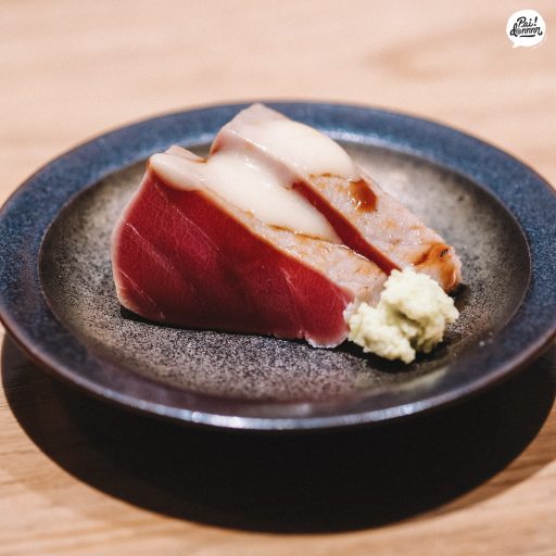 คำนี้เป็น Makuro takaki จากจังหวัด Nagasaki ด้านบนเพิ่มความสดชื่นด้วย Miso yuzu sauce
